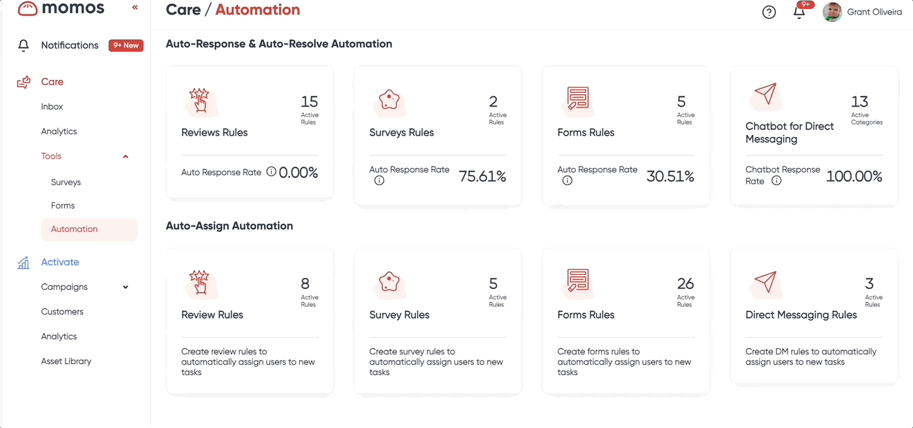 Access to automations is limited to admins. Go to the sidebar, under Care, select Tools, then click Automation.