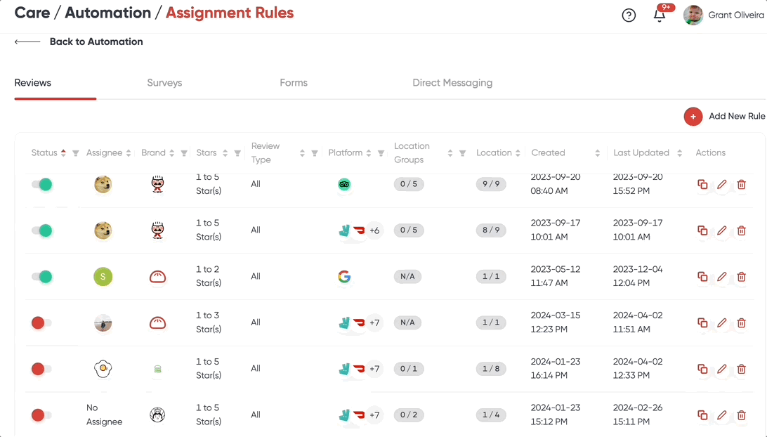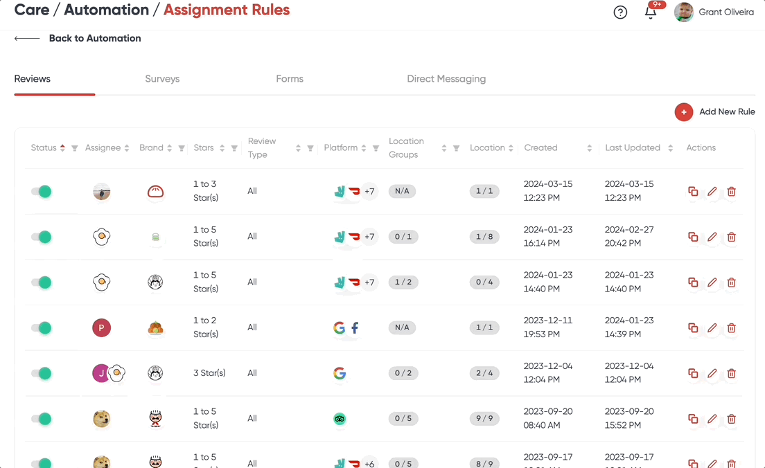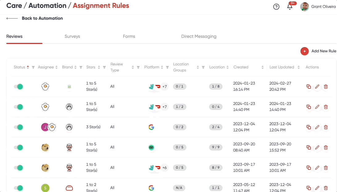 The Auto-Assign Automation lets you set up rules that automatically assign team members to feedback for your selected brands and locations. This ensures that all feedback receives proper attention and is addressed promptly.